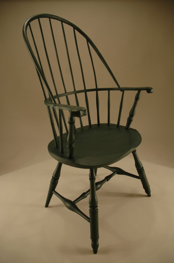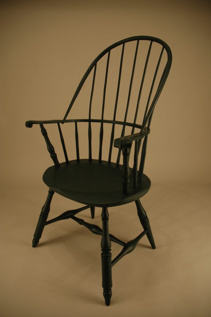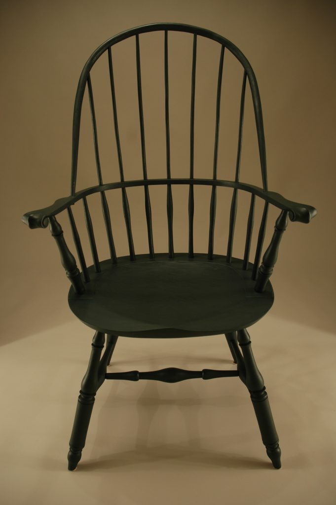 I built one of these chairs in a 4-day course I took with John Robinson at his shop north of Toronto in 2006. This type of Windsor chair is called a “Tall Sack Back Chair”.