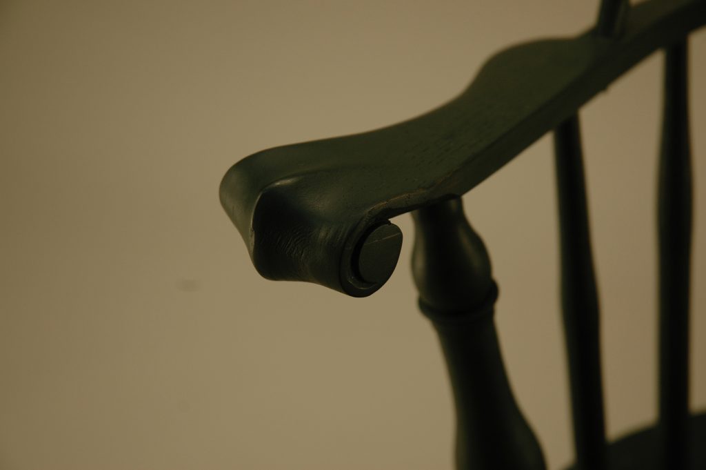 The chair was finished using milk paint, hemp oil and wax. I purchased the milk paint from Homestead House in Toronto. I first brushed on 2 coats of “Kentucky Green” milk paint. When the milk paint dried, I rubbed on 4 coats of hemp oil (also purchased from Homestead House), waiting 1 day between coats for it to dry. When the last coat of hemp oil dried, I rubbed on a coat of bees wax and then buffed it out with a soft cotton rag.